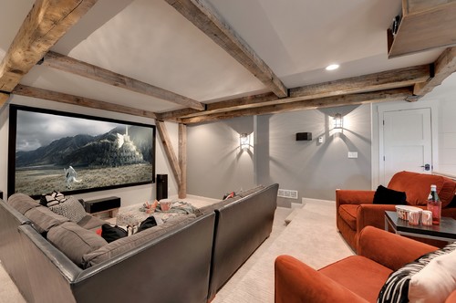 If you have the extra space in your basement, think about adding a small kitchenette or bar for snacks and drinks and additional storage for blankets, games, and anything else you might need.